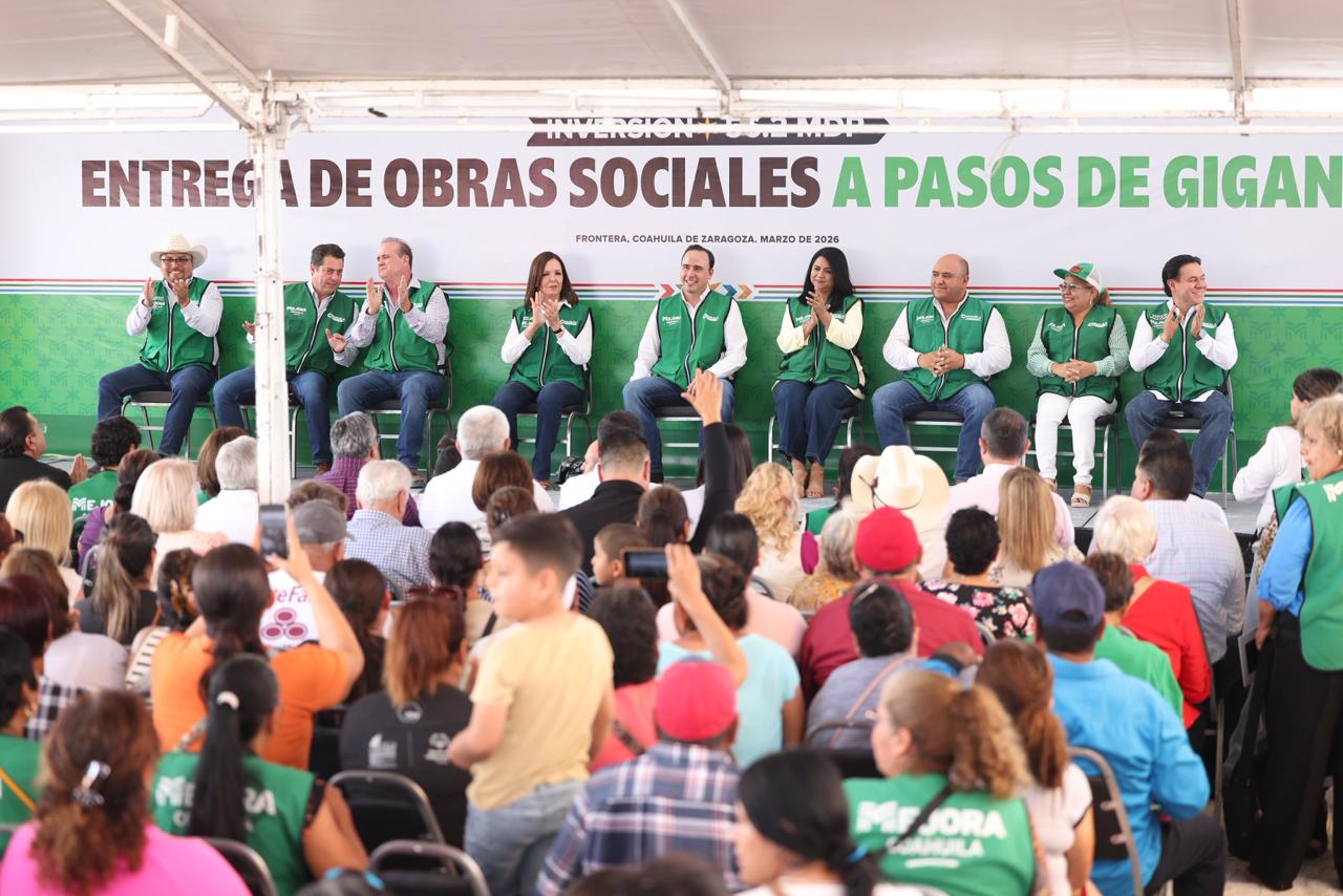Frontera, Coahula de Zaragoza; a 05 de marzo de 2026.- En gira de trabajo por la región Centro, el gobernador Manolo Jiménez Salinas visitó los municipios de Frontera y Monclova, en los que, de manera simbólica, arrancó y entregó obras por más de 50 millones de pesos dentro del programa Con Obras Sociales a Pasos de Gigante, además de asistir al congreso juvenil 300 Pa´delante, que se coordina desde Inspira Coahuila.